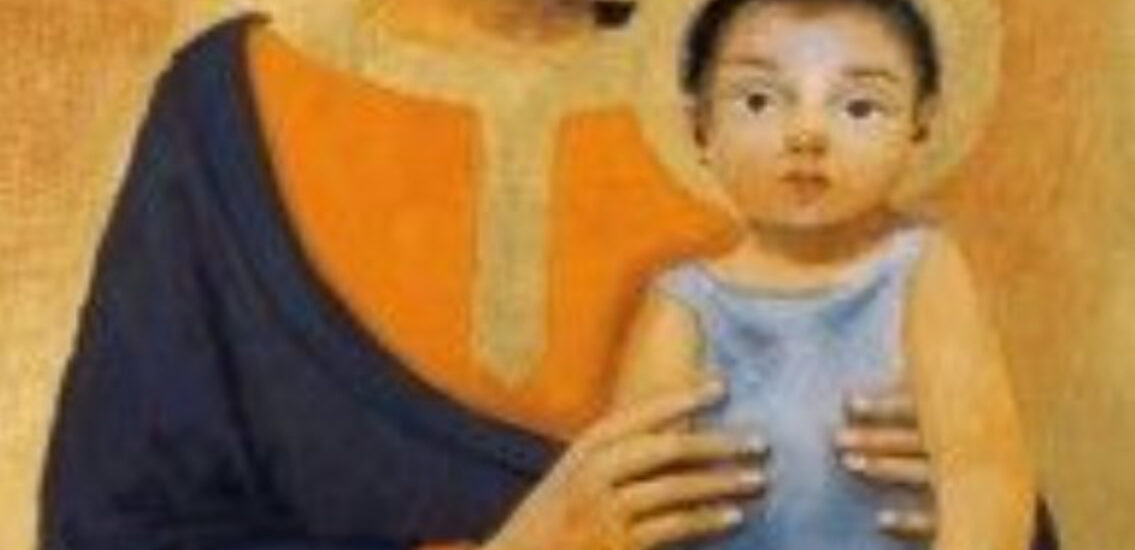 Per Arcabas (pseudonimo di Jean-Marie Pirot ) la Vergine è la Madre, colei che presenta Gesù, il Bambino