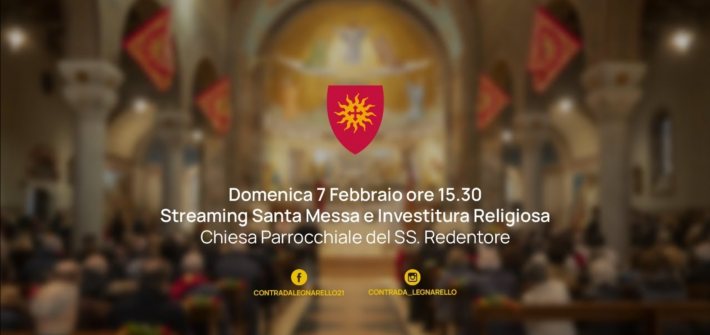 Domenica 7 febbraio 2021 trasmettiamo in diretta alle ore 15.30 la S. Messa e dell’Investitura della reggenza della Contrada Legnarello. Durante la celebrazione verrà assegnato anche il premio della bontà.